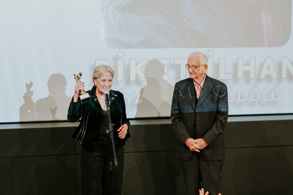 Törende oyuncu Selma Güneri ile yönetmen Biket İlhan’a Onur Ödülü takdim edilirken sinema, televizyon ve tiyatro sektörlerinde çalışan kadınların 2018’de kurduğu dayanışma platformu Susma Bitsin’e de Sinema Emek Ödülü verildi. Törende platforma kuruluşundan bu yana emek veren Çiğdem Mater’in cezaevinden yazdığı mektubu okundu.